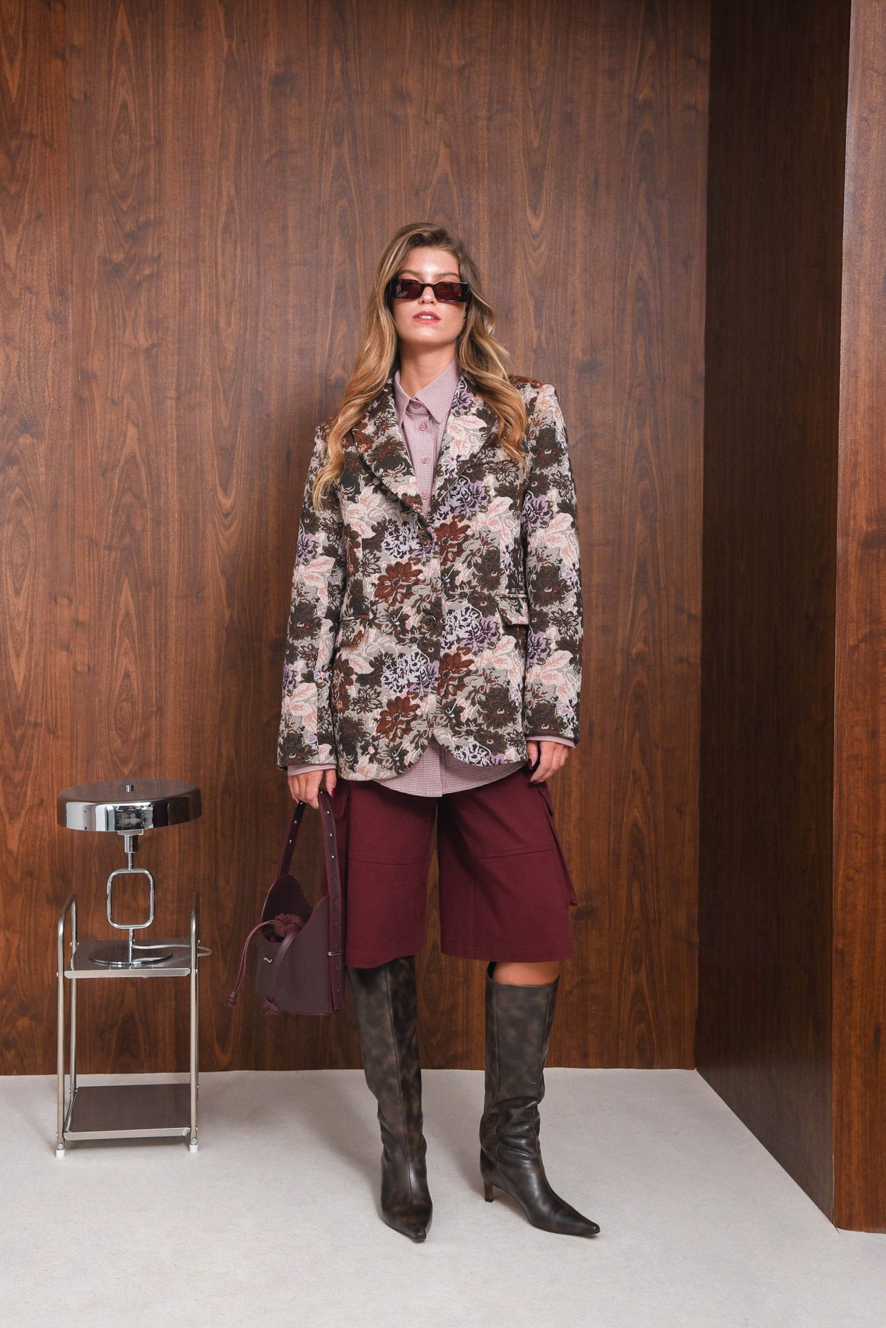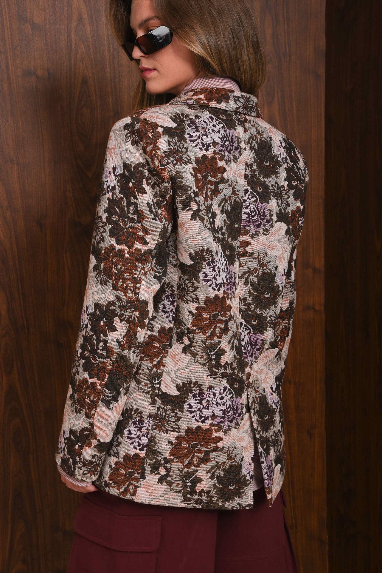 Crafted from textured floral jacquard, the Own Blazer has a straight fit with a structured shoulder line. It features a notched lapel, front button closure, flap pockets, and a back vent. Fully lined for a smooth finish, it blends comfort and elegance, making it a timeless piece for any wardrobe.