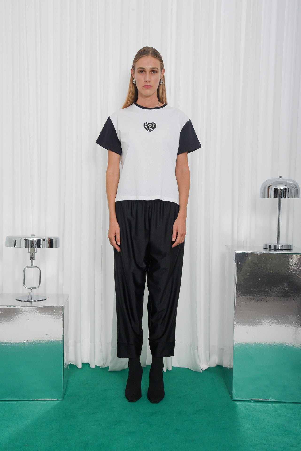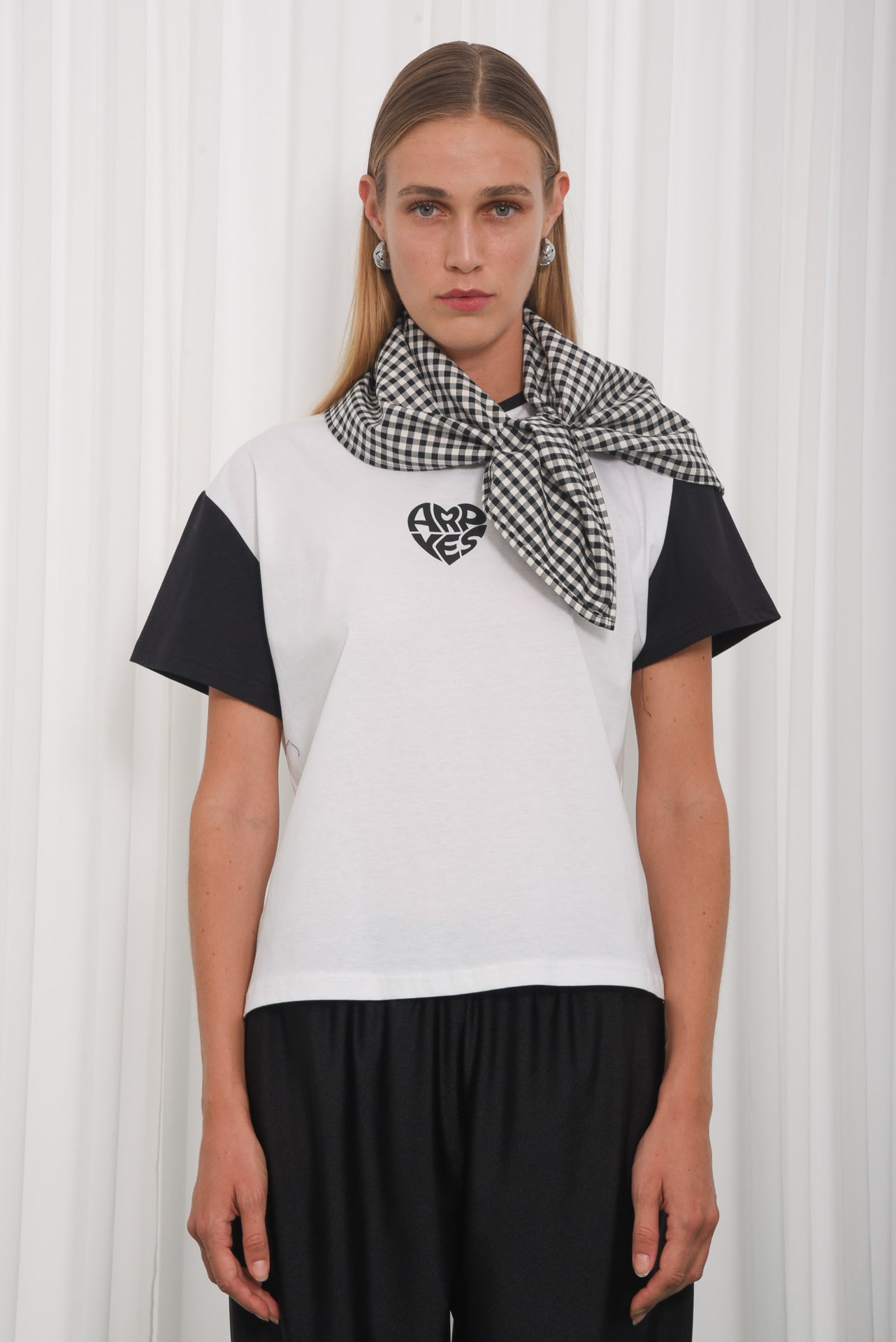 The Stone Heart tee is made of soft organic cotton with a relaxed fit. It has a crew neckline, short sleeves in contrast color, and a straight hem. A bold heart-shaped “ARPYES” print decorates the chest. Comfortable and easy to style, it’s a versatile piece for everyday wear.