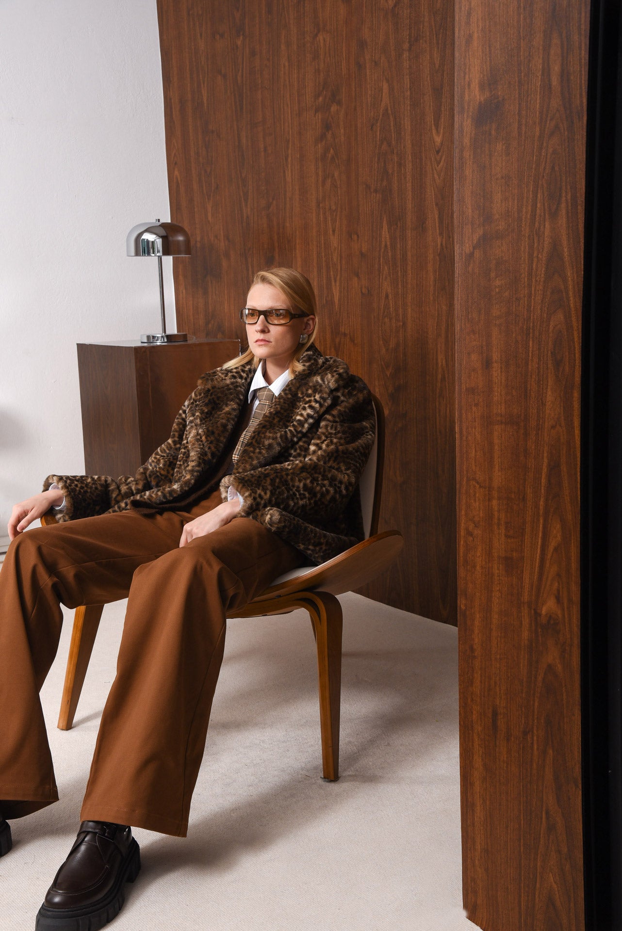 The It’s Complicated faux fur jacket is soft, warm and designed in a bold leopard print. It has a wide collar, long sleeves and a relaxed, easy-to-layer fit. The high-pile faux fur adds texture, while the full lining keeps it comfortable. Finished with a straight hem, it’s a statement outerwear piece for everyday wear.