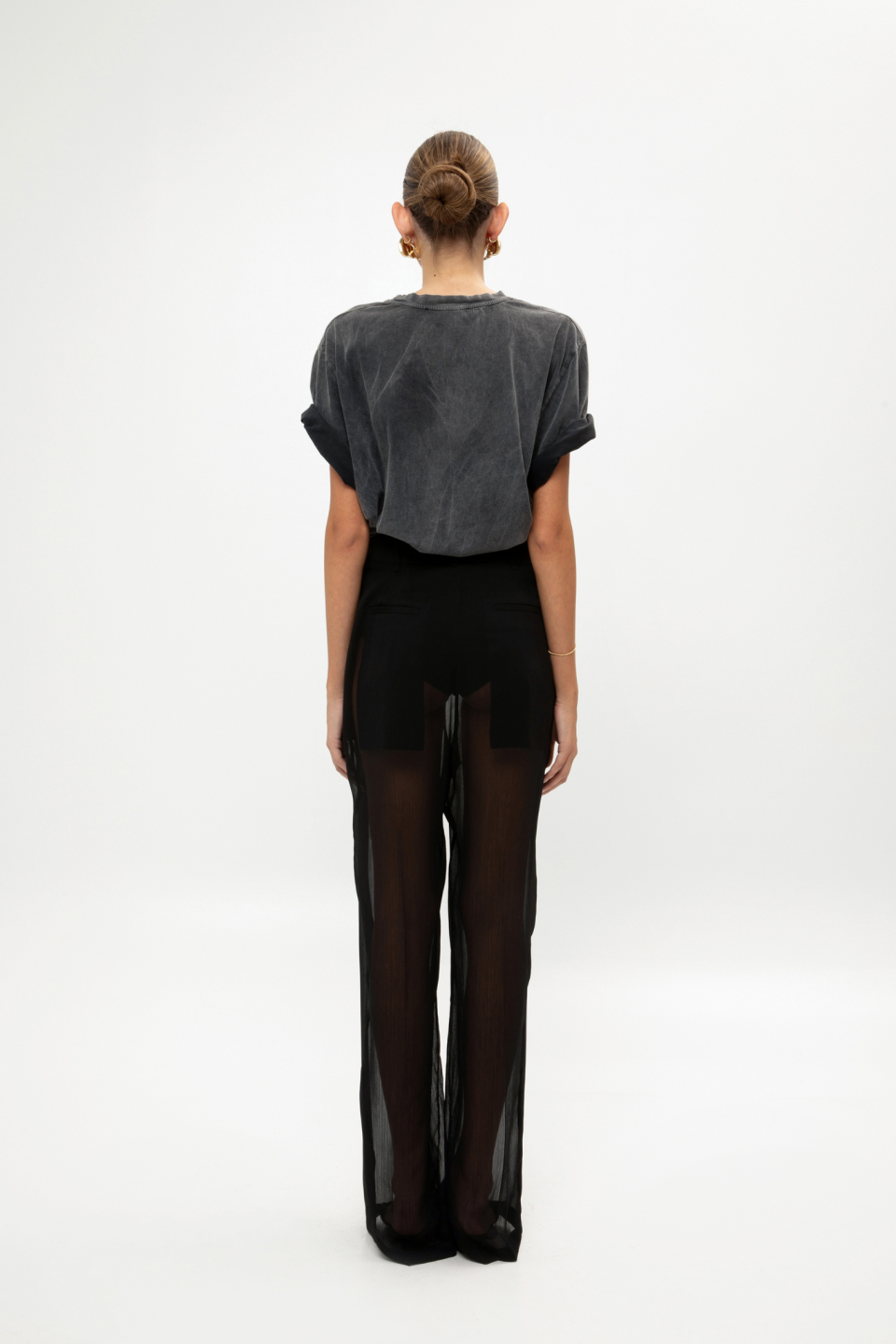 The Black Sheer pants, featuring a lightweight, flowy design for a chic and daring look are perfect for layering and bold styling.