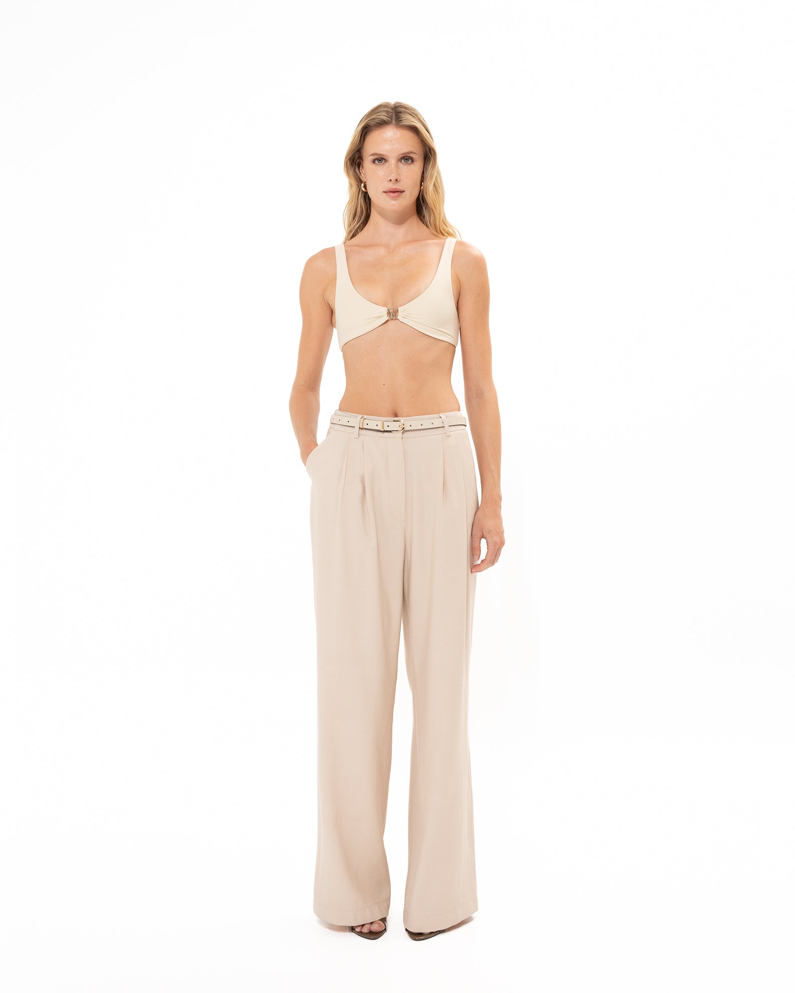 This thin belt features tonal top stitching and fastens with a bronze buckle.