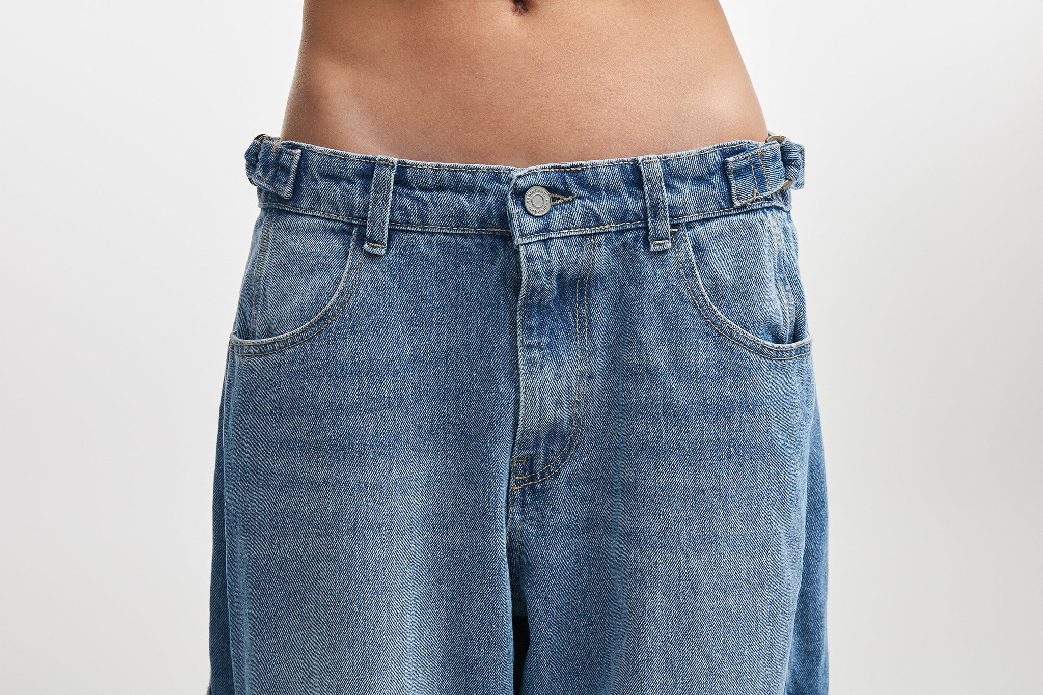 Relaxed-fit denim pants with utility-inspired details. Features side tool loops and a large patch pocket for a functional, modern look. Soft washed finish for everyday comfort.