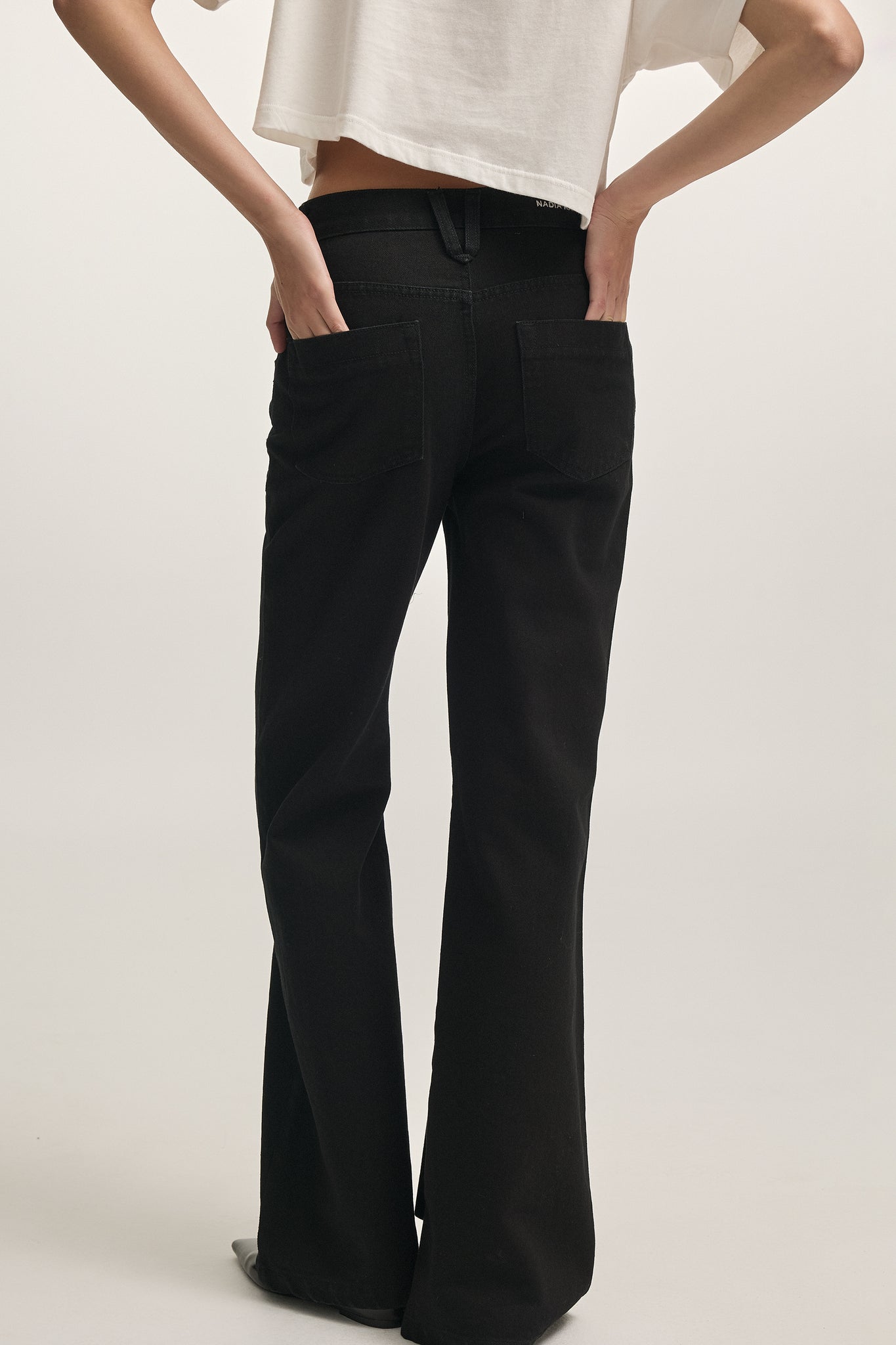 Timeless straight-leg denim trousers made from pure cotton. Featuring a relaxed fit and a subtle knee slit for a modern edge, they combine effortless style with everyday comfort, a wardrobe essential that never goes out of style.