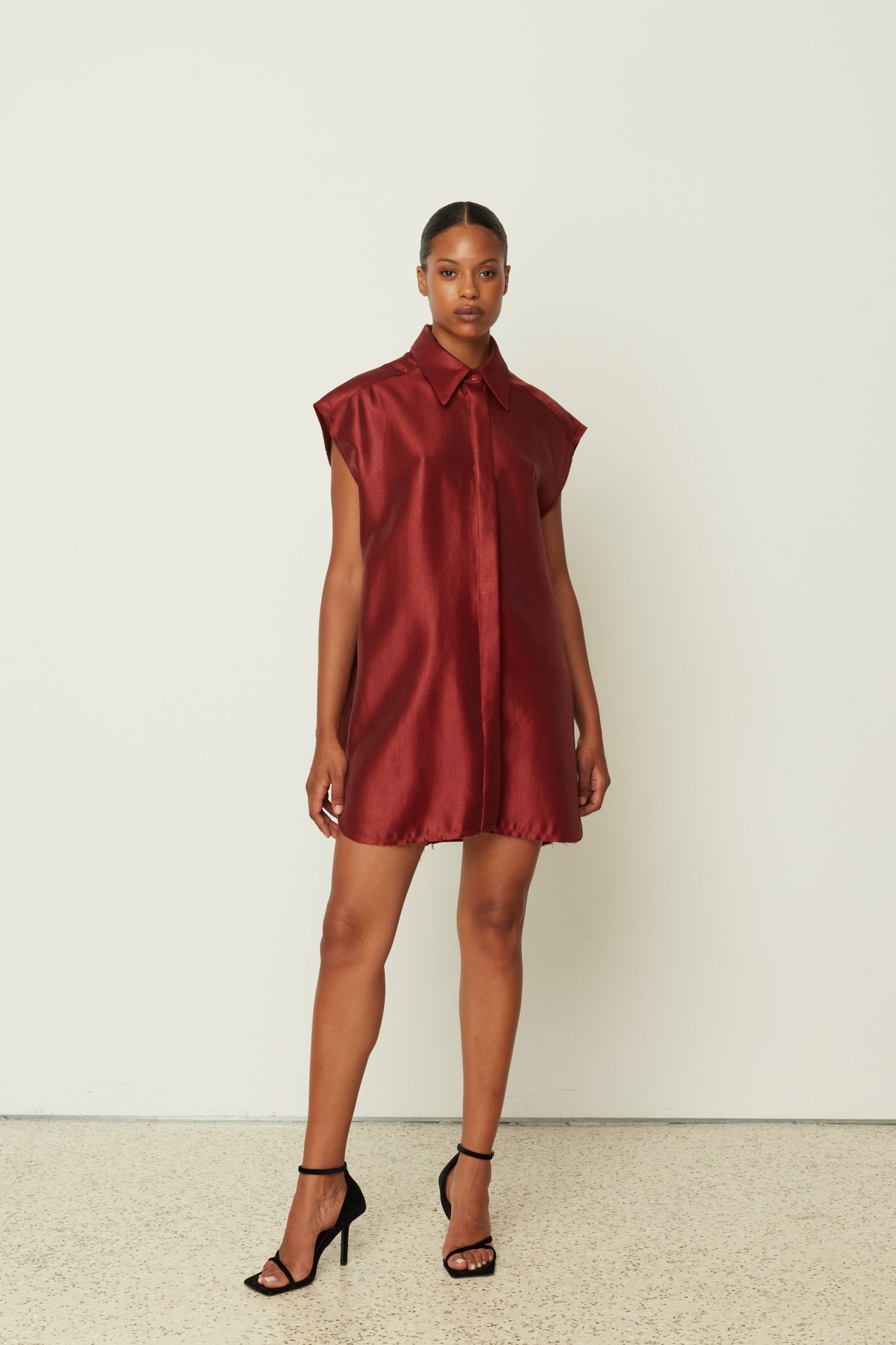 METALLIC SHIRT DRESS CHILI ONE SIZE