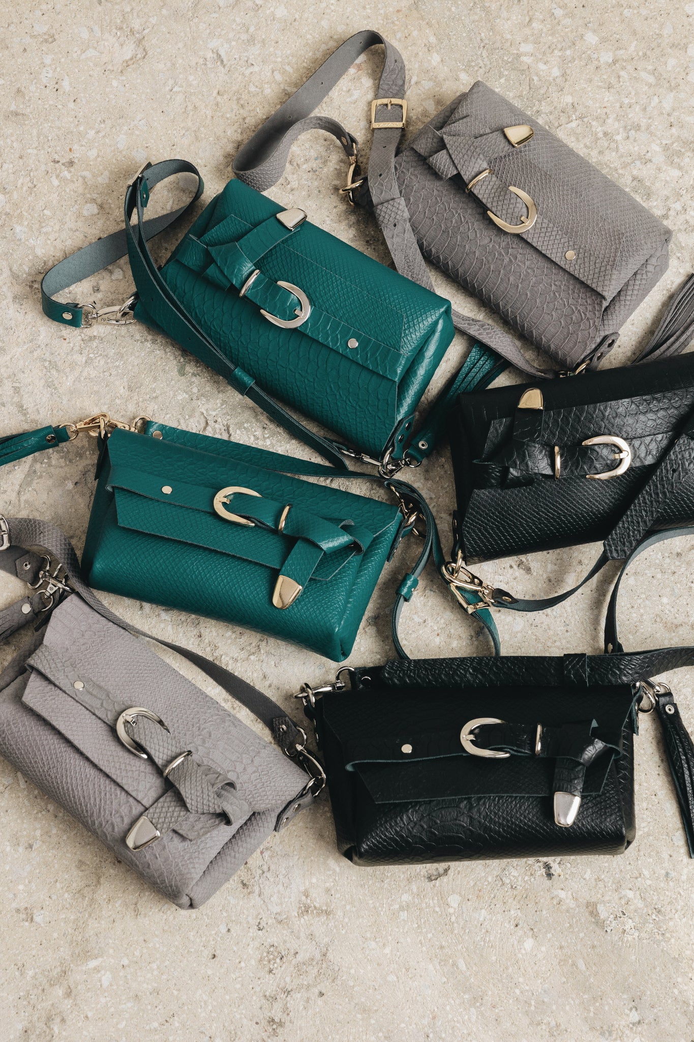 Handcrafted leather bag with gold metal details. Comes with double strap.  Comes with removable leather wallet.