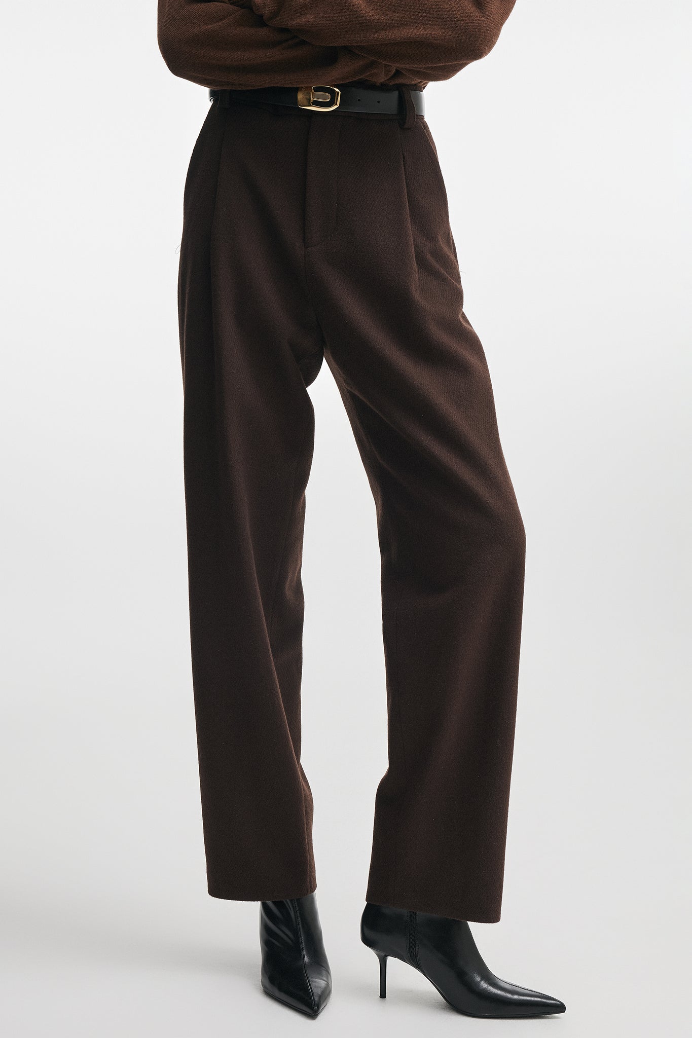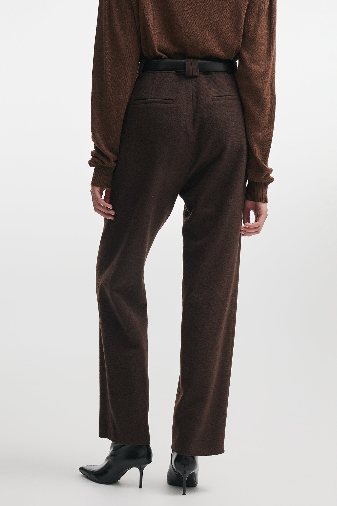 A refined pair of tailored trousers crafted from a soft wool-blend fabric, designed to elevate any wardrobe with effortless sophistication. Its clean, elongated silhouette flatters the figure while offering comfort, structure, and timeless elegance, ideal for both everyday wear and polished looks.