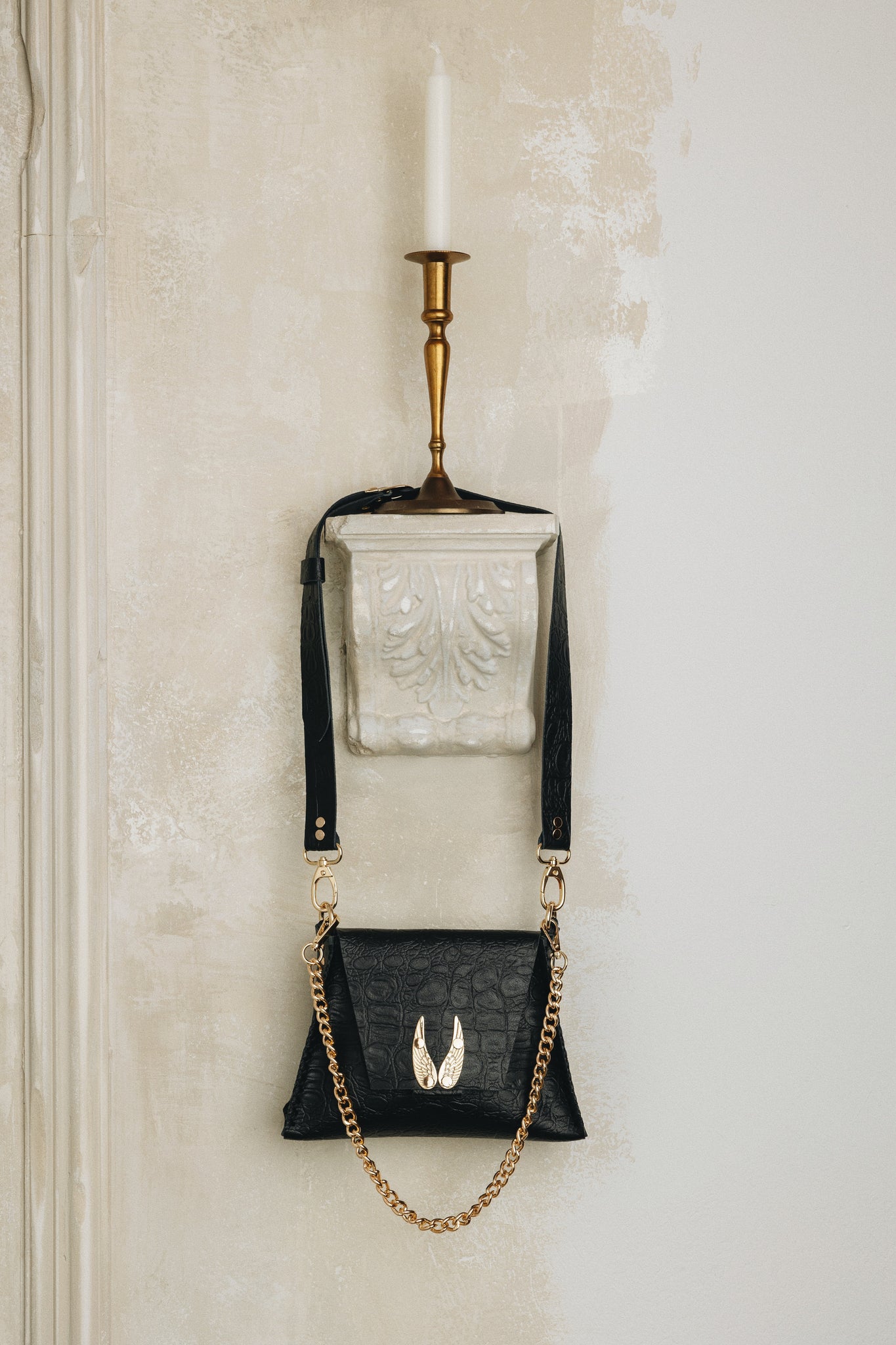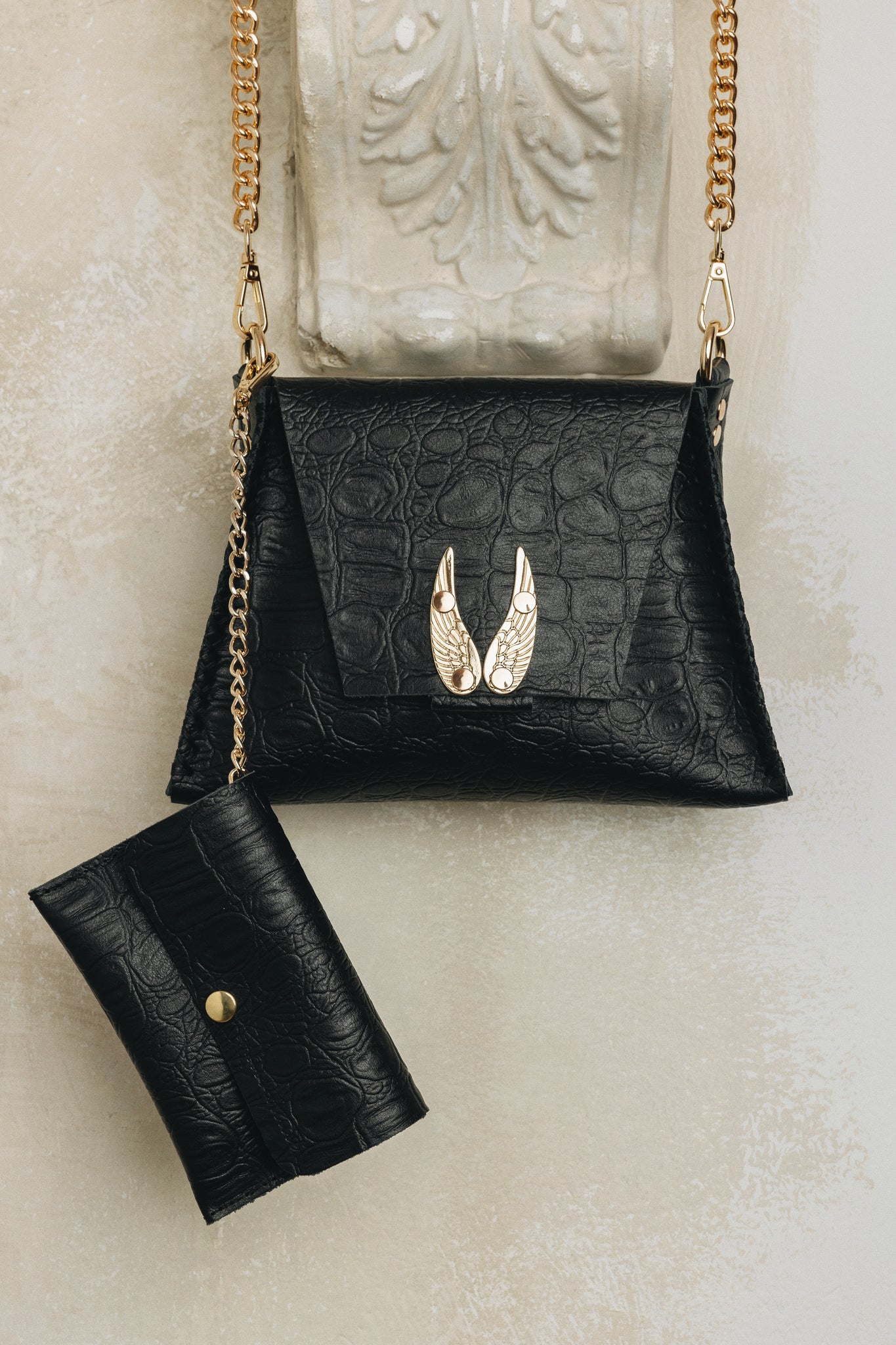 "WINGS" SMALL BLACK GOLD SHOULDER BAG