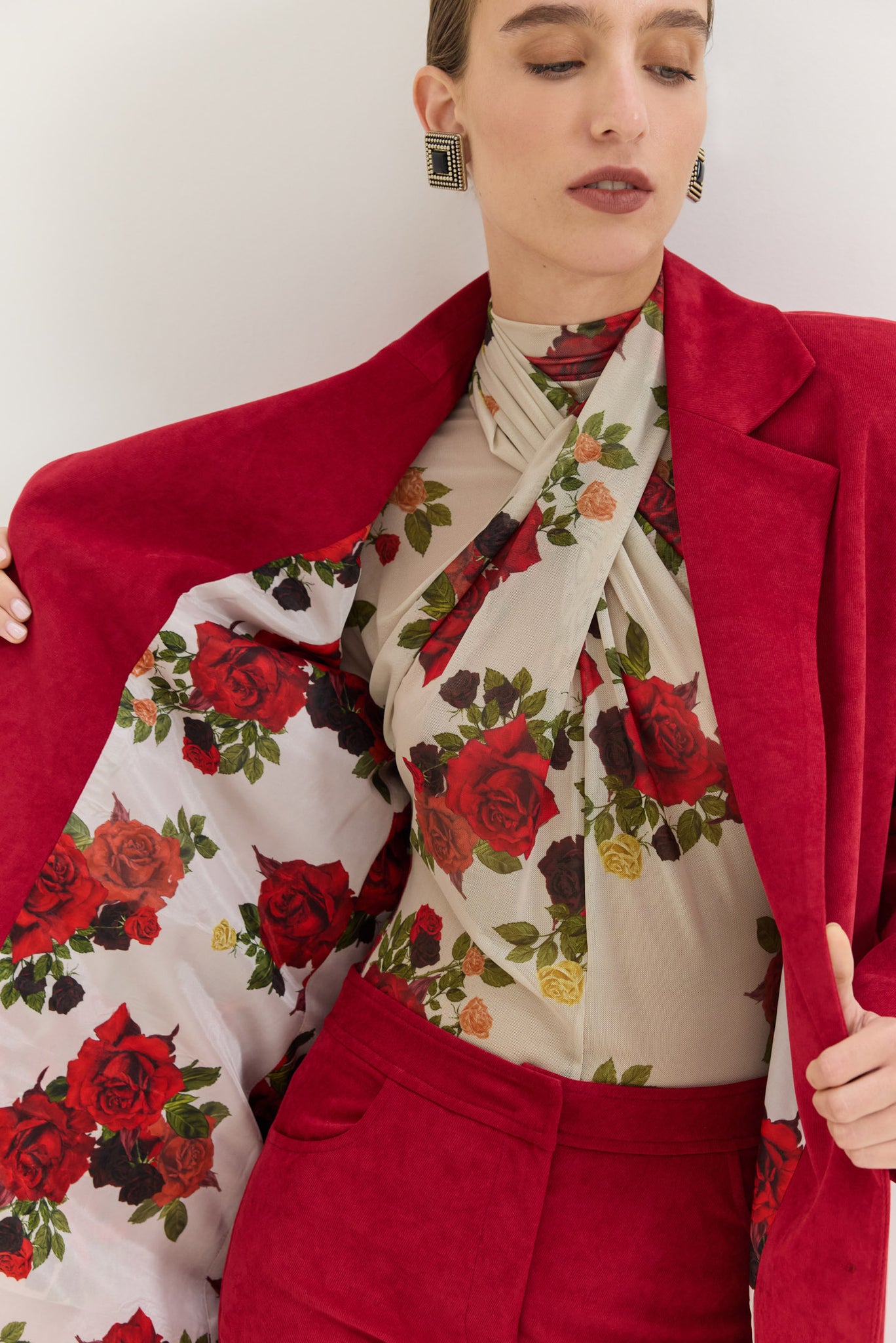 • Printed φόδρα με τριαντάφυλλα σε cream φόντο