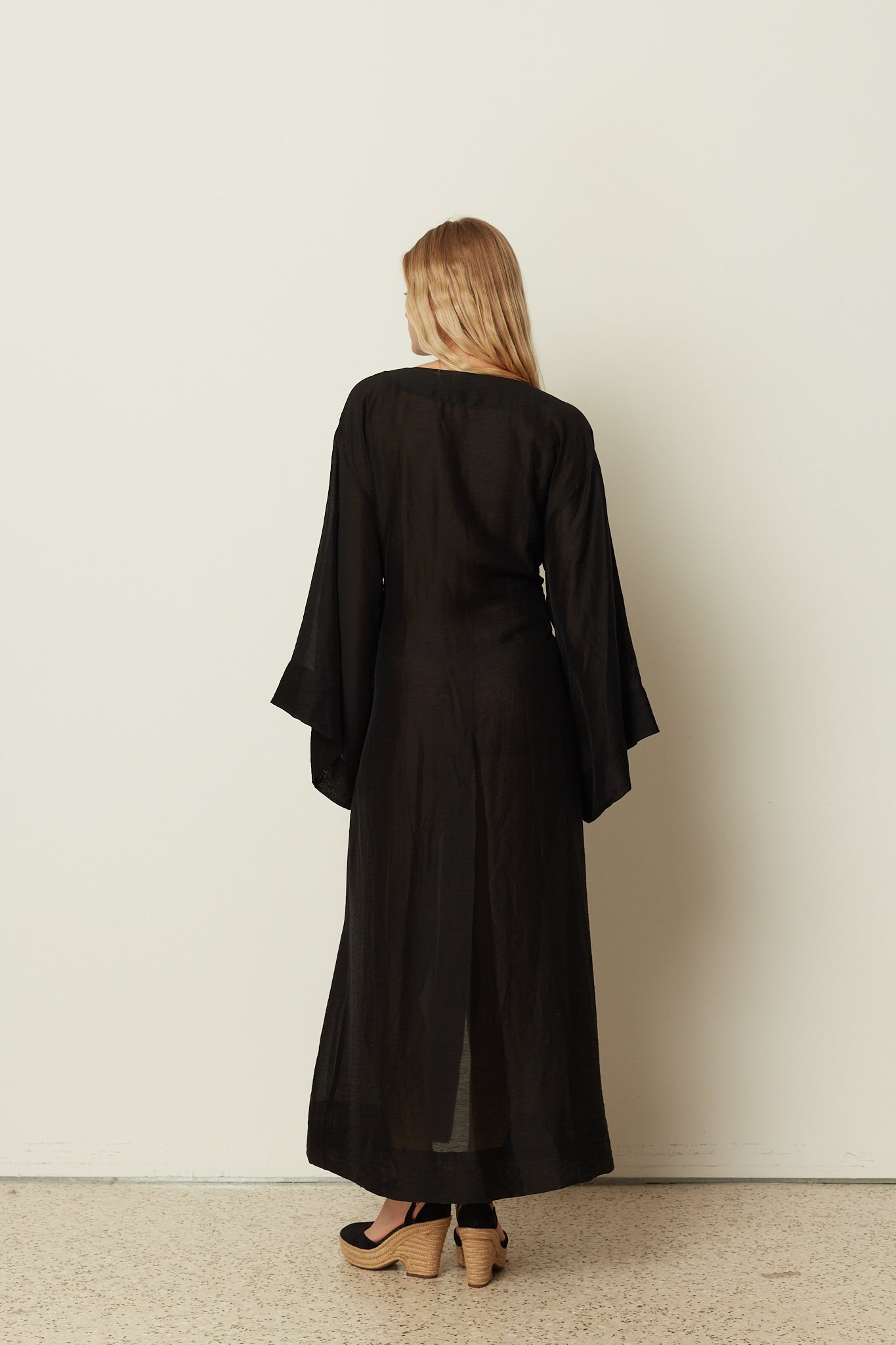 BLACK SHEER LONG KIMONO