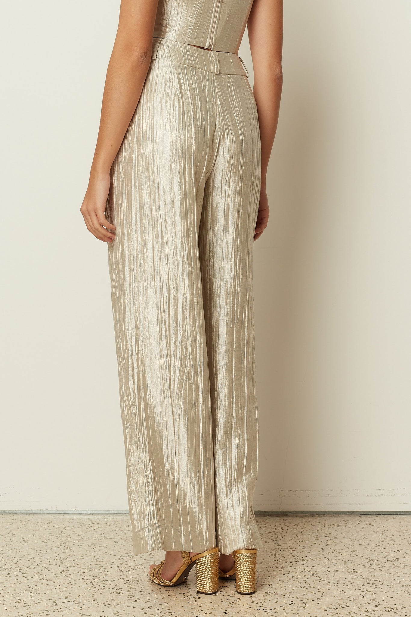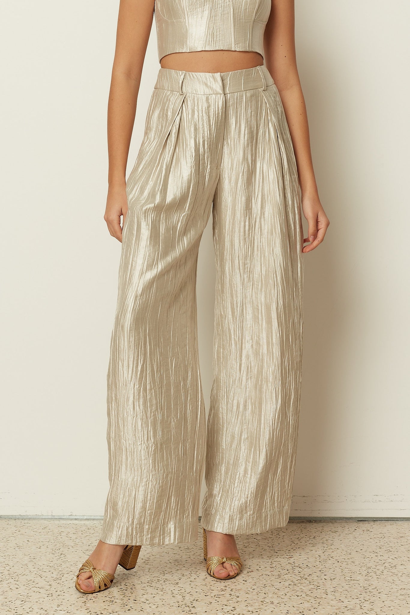 VANILLA METALLIC PLEATED WIDE LEG PANTS