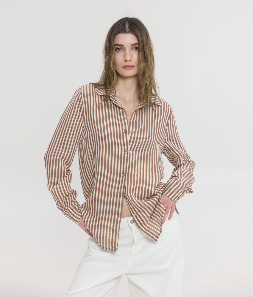 LUCIDA SEMI-SHEER SHIRT BROWN