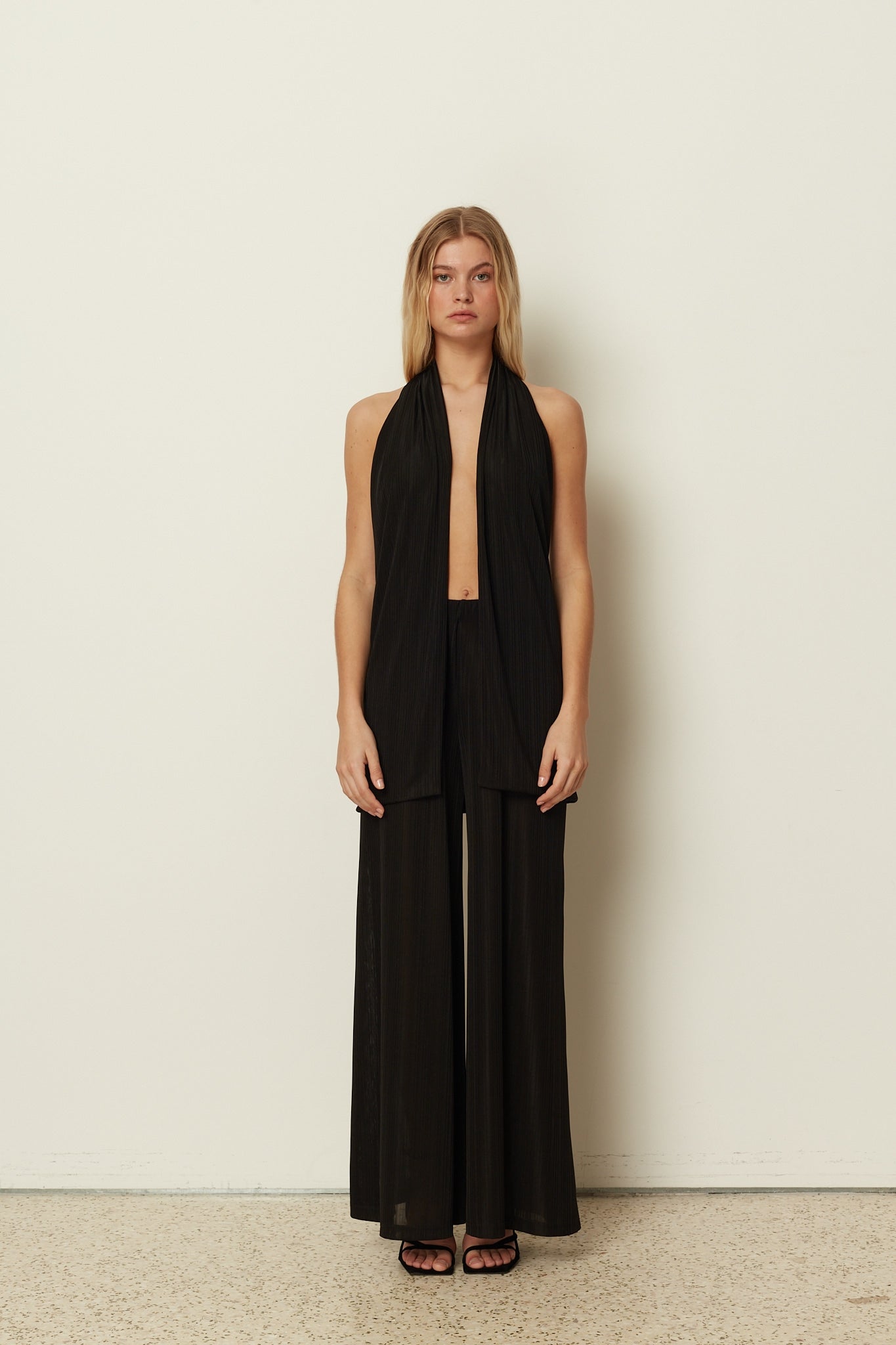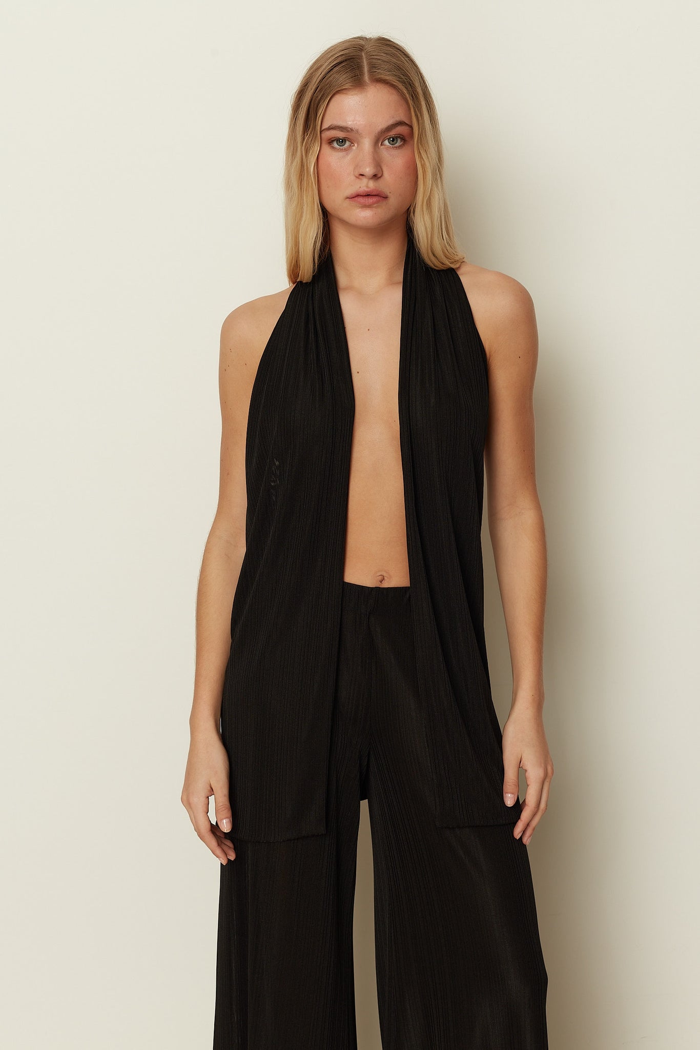 A versatile ckontova jersey blouse designed to transform with your styling. Crafted in a softly textured, pleated jersey with a fluid drape, it can be wrapped and tied in multiple ways, wear it as a halter, cross-front wrap, one-shoulder, or scarf-inspired top. The elongated panel adds movement and an elegant finish, making it ideal for elevated day looks and effortless evening dressing.