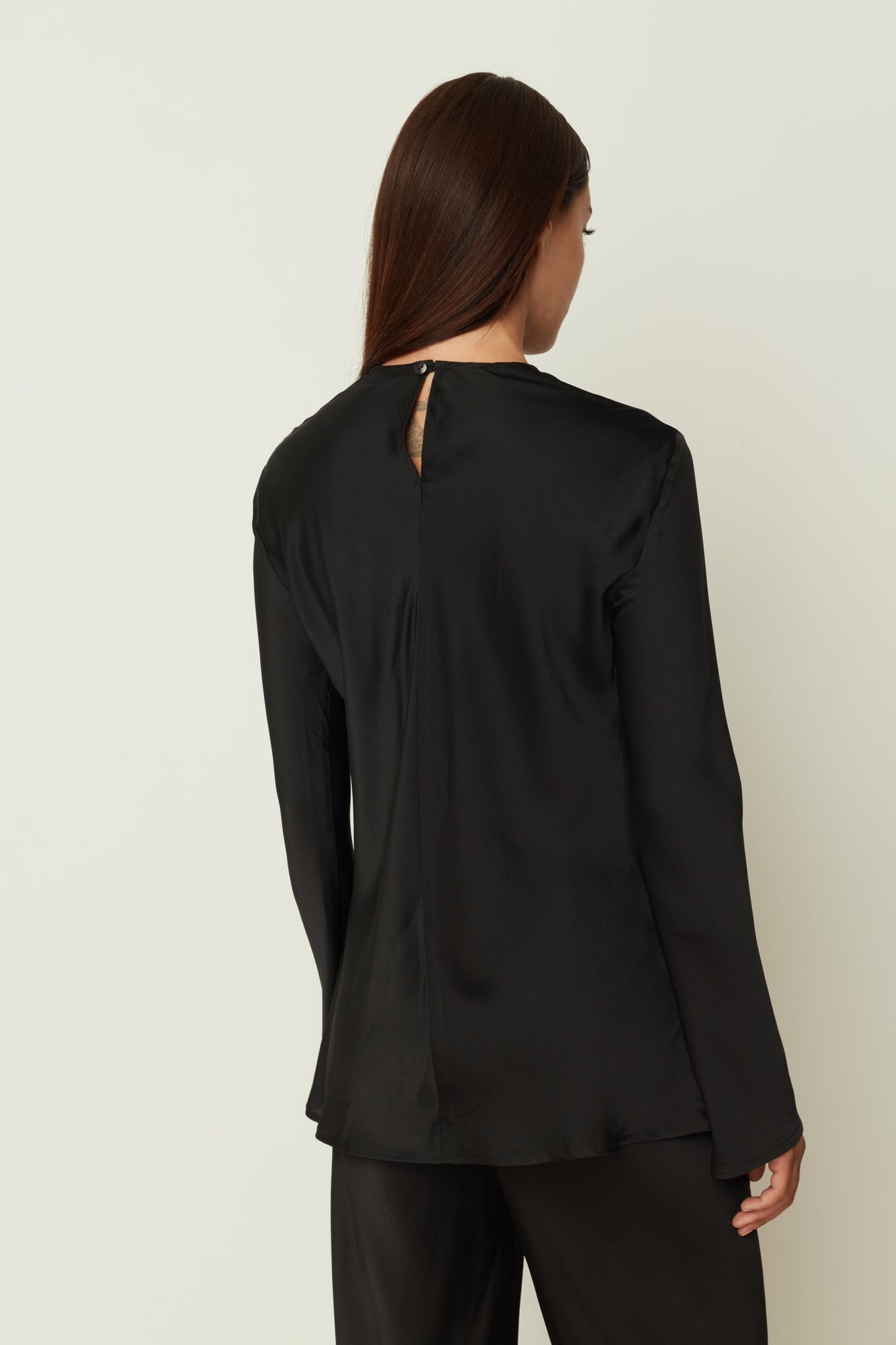 BLACK SATIN LONGSLEEVE TOP