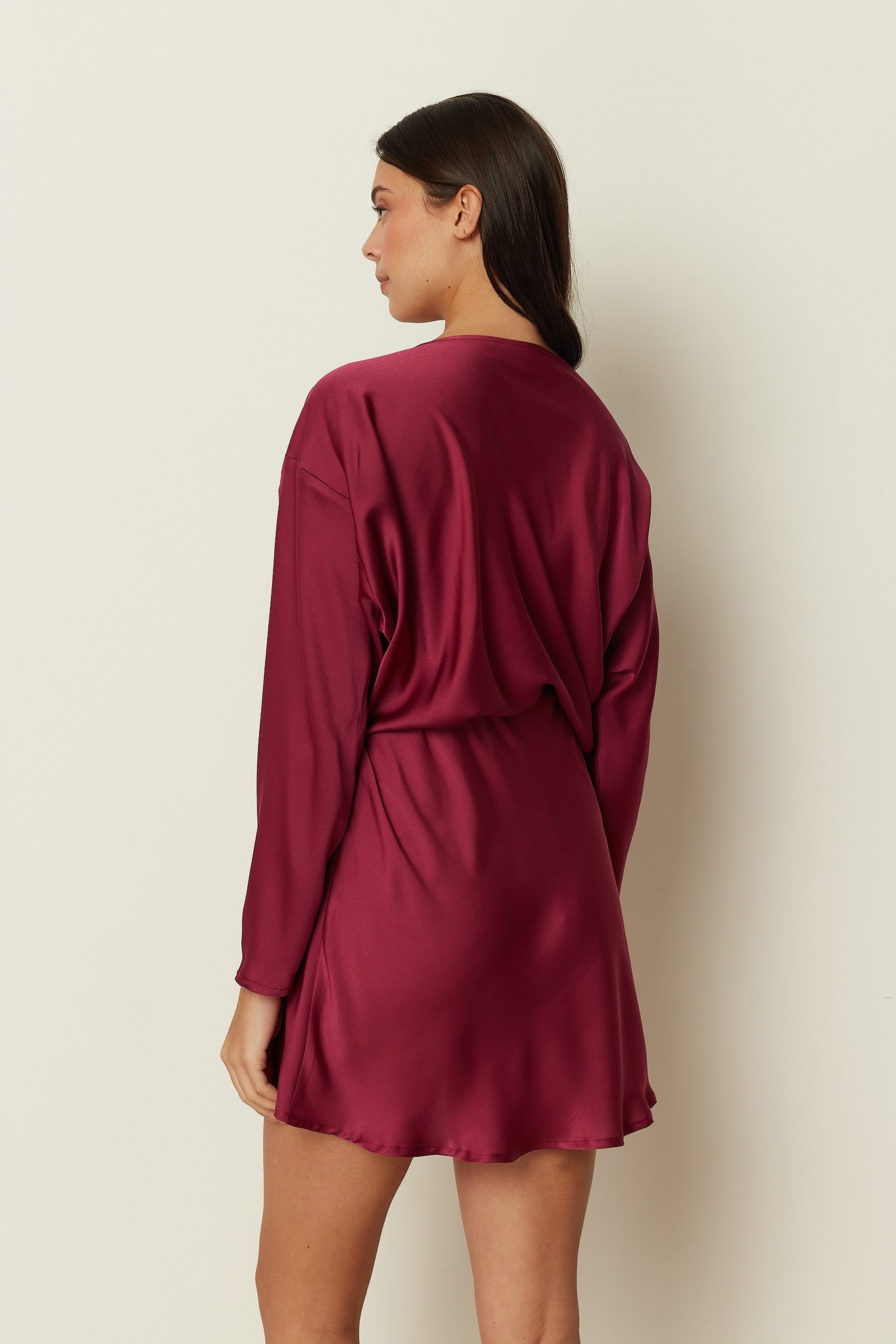 A statement wrap-style blouse by ckontova, designed with a deep V-neckline and a crossover front that reveals a subtle cut-out at the waist. Cut in a smooth satin-like fabric with a fluid drape, it features relaxed long sleeves and a softly cropped silhouette that pairs perfectly with high-waisted bottoms. Wear it with the matching skirt/shorts for a polished occasion set, or style with tailored trousers for elevated nights out.