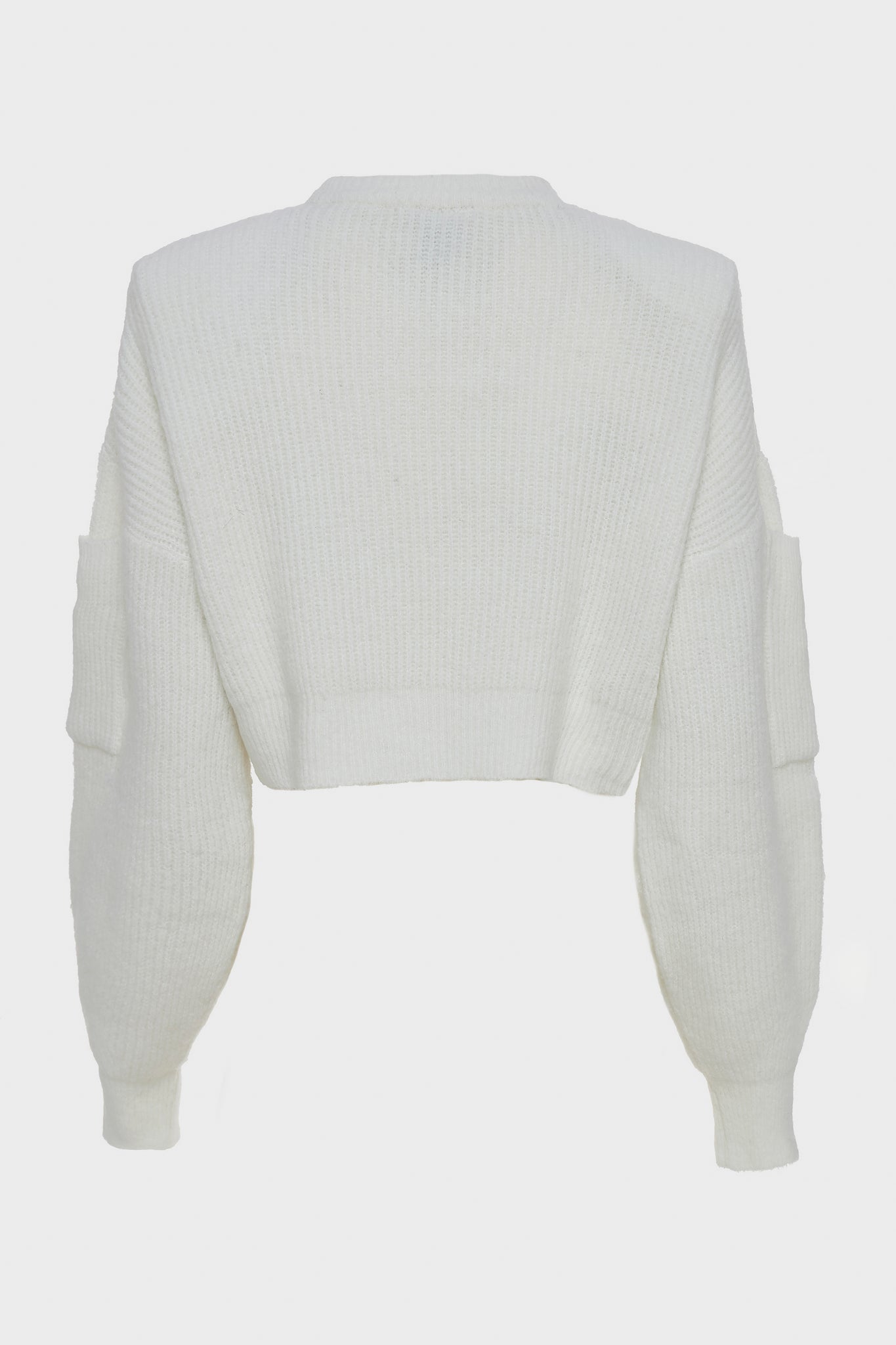 A refined cropped knit with a clean crew neckline. Sculptural sleeves add quiet volume, creating a modern silhouette with ease and comfort.