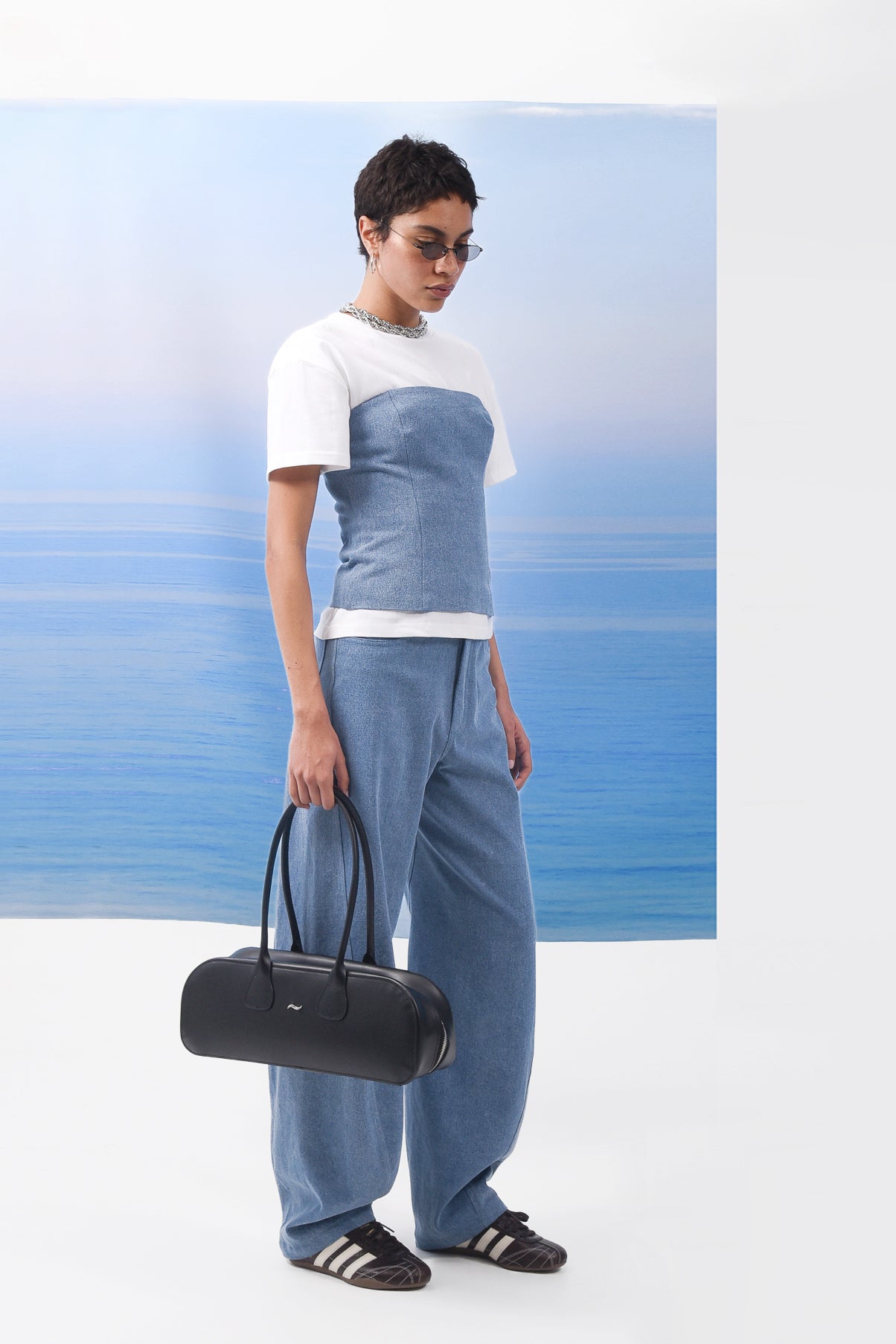The Float Denim Corset blends structure with effortless cool. Designed in soft denim with a strapless, sculpted silhouette, it features shaping seams and an adjustable lace-up back for a personalized fit. Structured yet comfortable, it enhances the waist while allowing movement, perfect worn alone or layered for a modern, statement look.