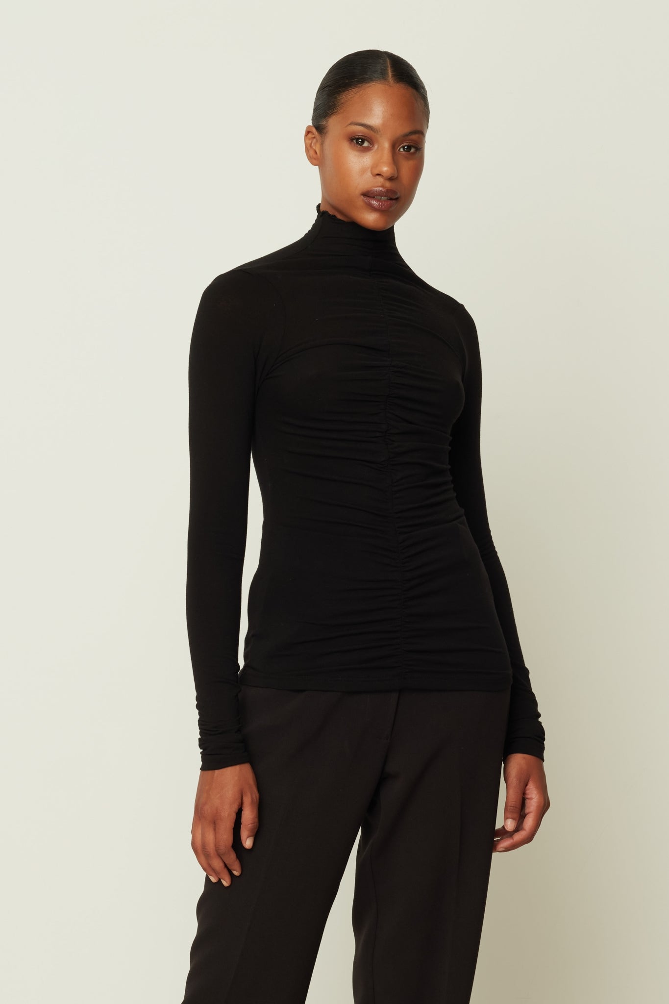 RUFFLED HIGH NECK TOP BLACK ONE SIZE