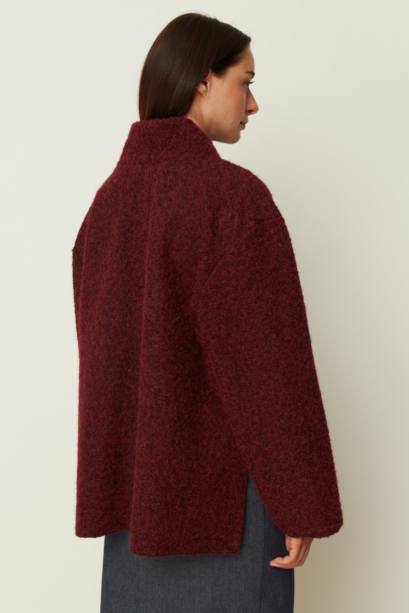 V NECK KNIT TOP BORDEAUX ONE SIZE