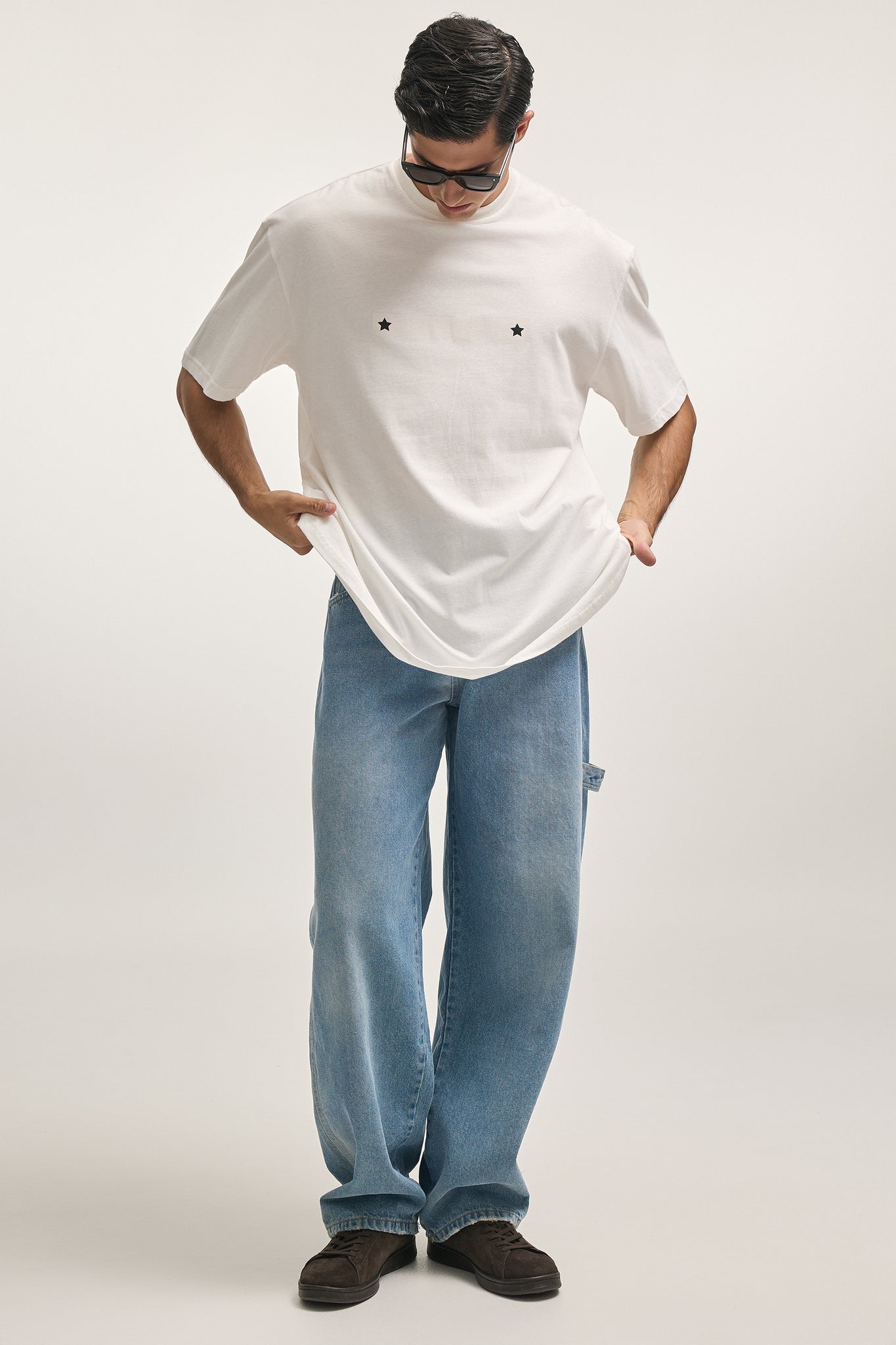 Relaxed oversized T-shirt crafted from soft, premium cotton for a smooth and breathable feel. Features a minimal design with signature embroidered details and a classic crew neckline. A timeless piece that combines effortless comfort with modern attitude  perfect for layering or wearing on its own.