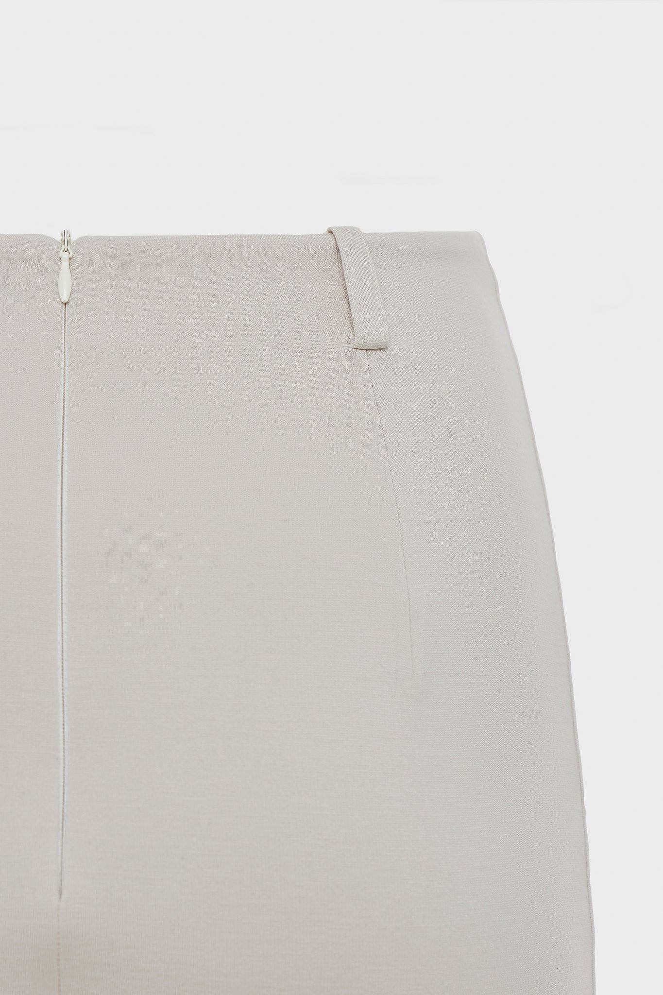 A structured mini pencil skirt in soft jersey punto fabric. Cut to a refined, body-skimming silhouette, it offers both comfort and precision. Minimal detailing and clean lines highlight the purity of its form. A versatile piece that transitions effortlessly from office to evening, embodying quiet strength and timeless polish.