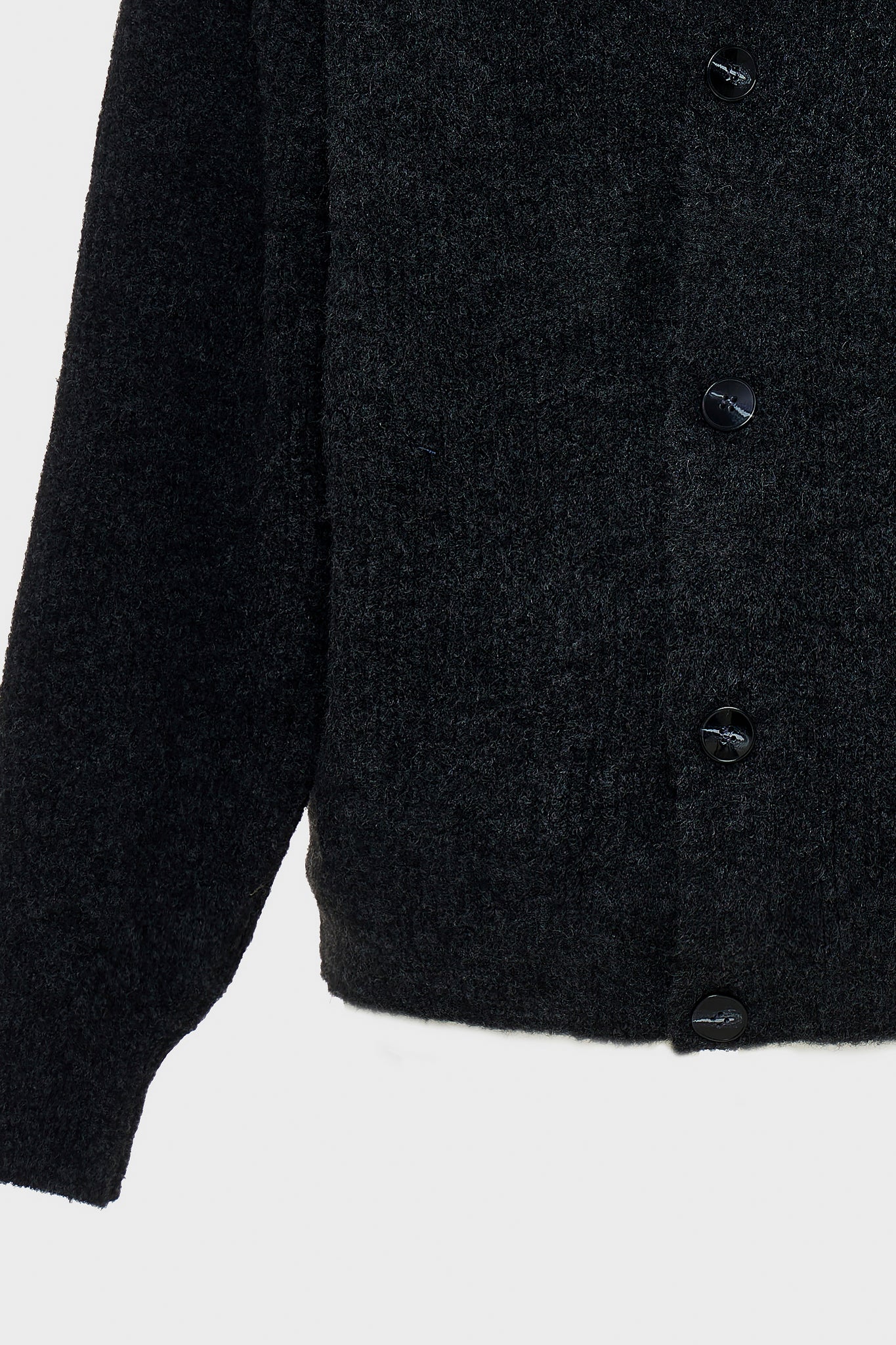 A refined cardigan in a relaxed silhouette. V-neckline with a clean button placket. Ribbed details define the cuffs and hem. A modern essential balancing comfort and quiet polish.