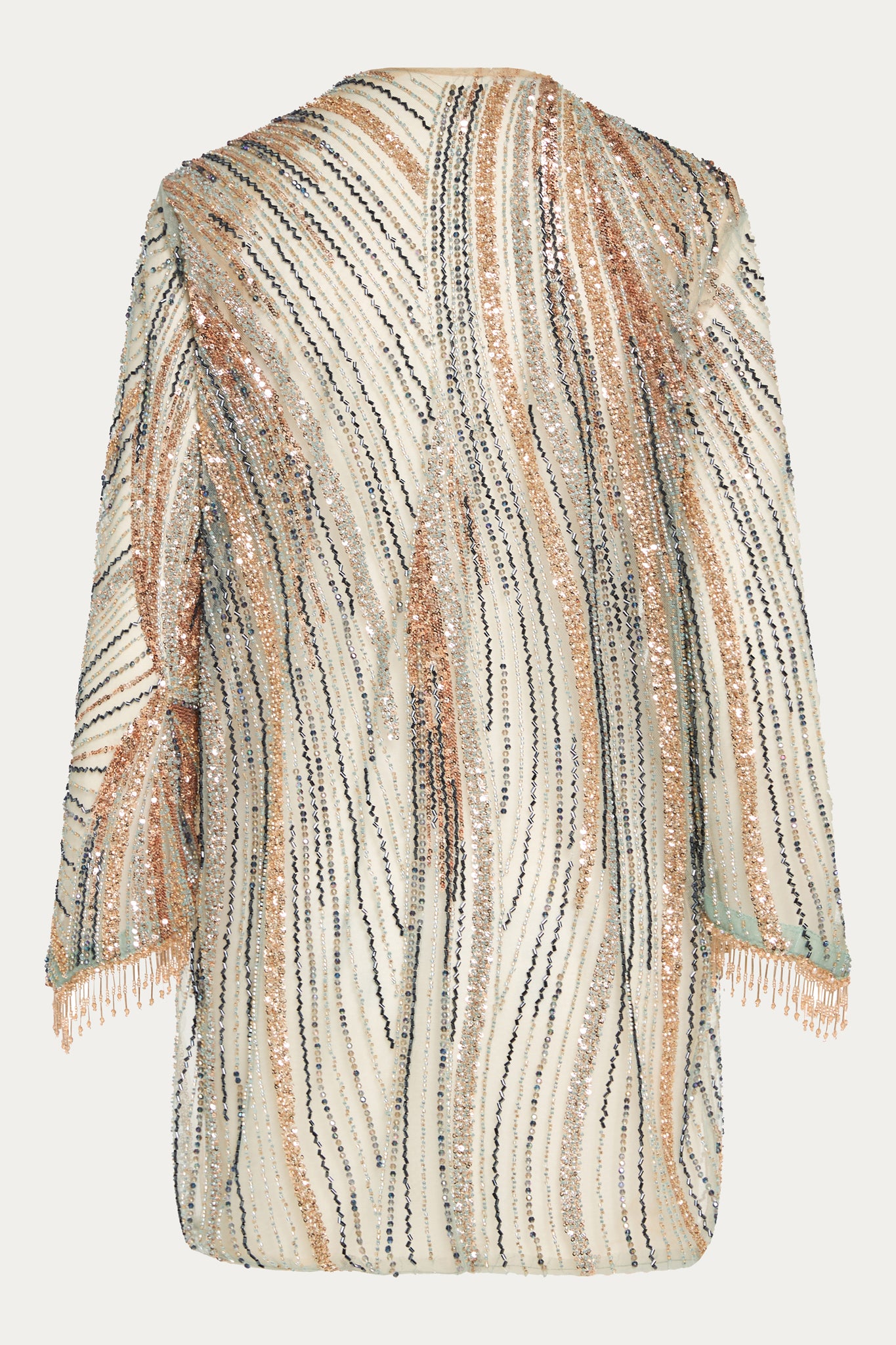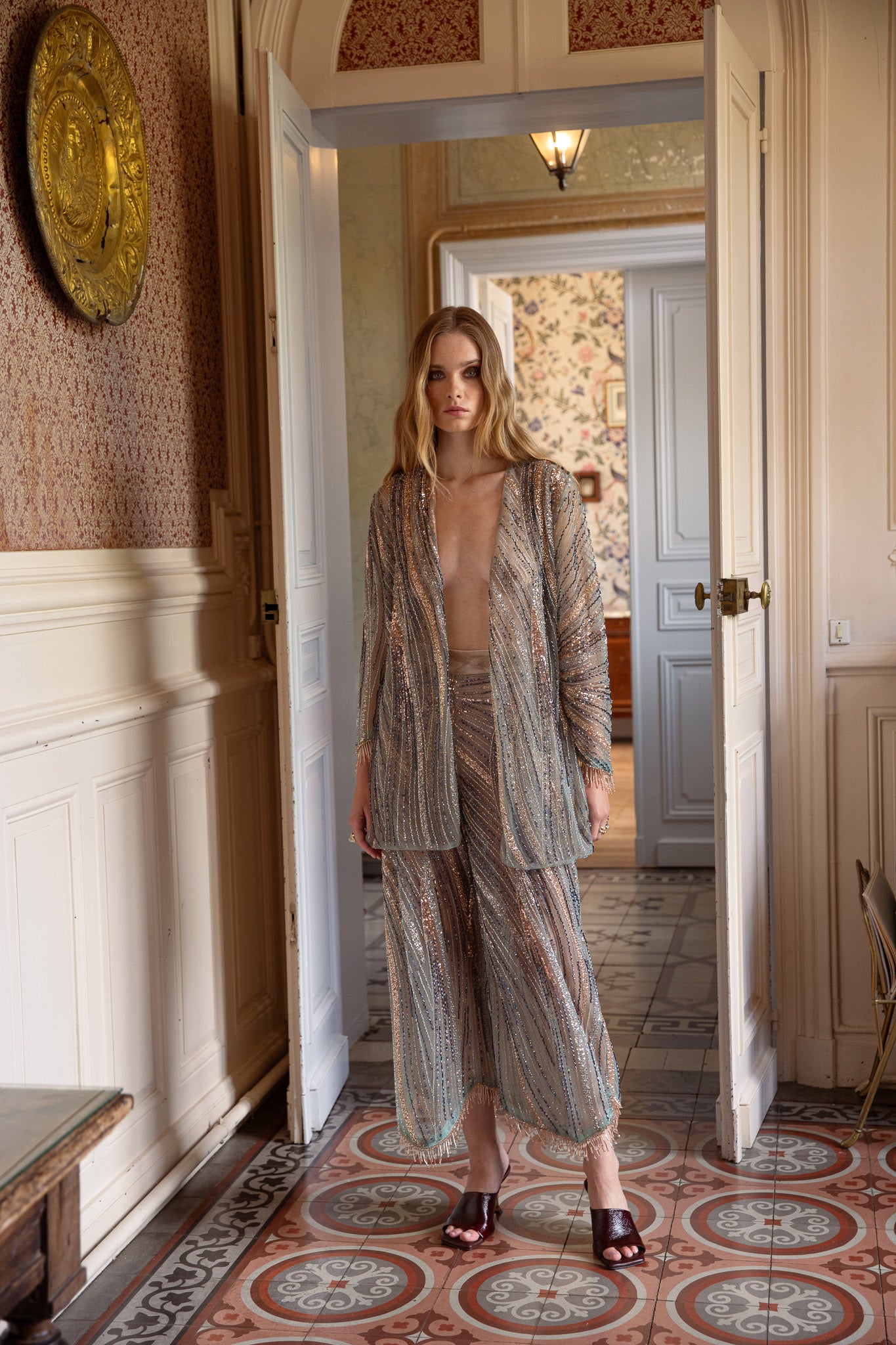 Due to its beaded embroidery, this piece is sensitive to layering.