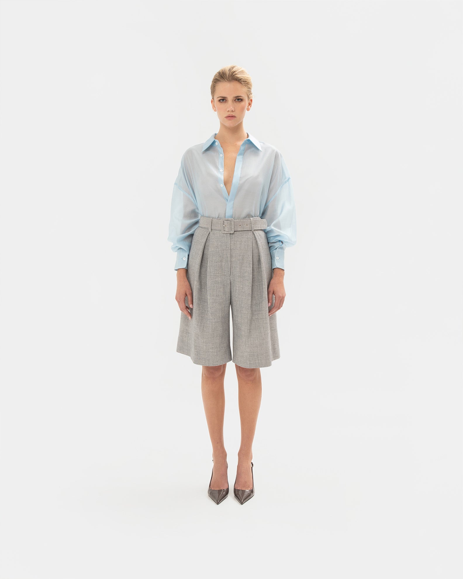 Wide-leg grey culottes that blend comfort with modern style.